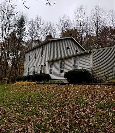 Lovely 3 bedroom colonial sitting on a very private wooded lot located on a cul-de-sac, main floor boast a formal living room with a new fireplace and wood flooring which opens up to the formal dining room also with wood flooring. A large eat in kitchen with newer stainless steel appliance with a slider leading to a rear deck for cooking out or just sitting back relaxing watching nature. A center hallway with a 1/2 bath and a sunken family room for kicking back and watching you favorite movie or tv show, oversized two car garage with entrance to kitchen second floor has large master bedroom suite with remodeled full bath and large closet along with two other bedrooms and a full bath with tub and shower, lower level has 392 square feet finished and carpeted and laundry area. Separate outbuilding for equipment storage.