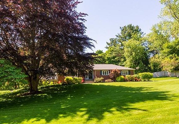 Sitting on an acre of land, this warm and inviting spacious ranch home is located on a quiet cul-de-sac. Wonderful first floor living with open eat in kitchen, Island with step down to lovely sun filled room with multi-purpose use. This room is bright and sunny and overlooks the large, private yard. Generous living room with fireplace and built-in shelves, dining room with built in cabinet, and bonus den surrounded by windows with walk out to composite deck. Hallway leads to 3 spacious bedrooms, 2 updated full baths one of which is off the master. Newly finished hardwood floors and freshly painted in many rooms. Lower level offers finished room, bonus 1/2 bath, laundry, 2 car garage, tons of storage and extra space to finish off should you desire. Enjoy the abundance of yard space to entertain, run around or possible expansion. 2007 new Furnace and Central A/C added, New roof 2016. Replacement windows in all but one room. Beautifully cared for home! SHOWINGS BY APPT ONLY