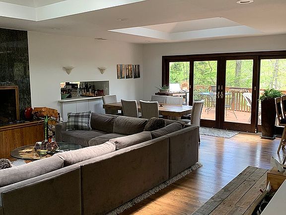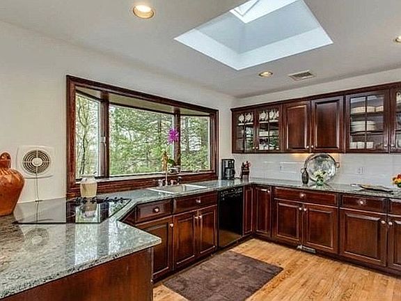 Stunning architecturally designed interior. Skylit tray ceilings, open floor plan, Living Room/Dining Room w/fplc & sliders to deck. Cherry & granite kitchen with wood floors. 12' window wall bringing the outside in. Lower level family room w/sliders to yard. Bedroom/Office makes working at home a pleasure. Full bath, 8x13 walk-in closet. Lushly landscaped .34acres, nestled in a private, picturesque setting. A must see!