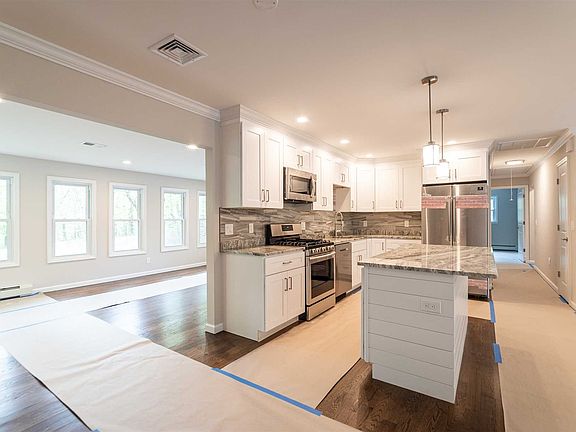Located in Lagrange Town just 5 minutes to Arlington HS & Taconic State Parkway. Welcome to Your Beautifully Renovated Home! You will impress your guests with this 4 bedroom 2.5 bath Hi Ranch. Maintenance-free exterior is vinyl sided with stucco foundation. Featuring unilock paver walkway. You enter into large open concept floor plan including a Living Room & Dining Room and Gorgeous Upscale Kitchen equipped with stainless steel appliances, quartzite counters & large center island with pendulum lighting + a Large family room w/ slider to deck located off Dining Room which overlooks private backyard. Proceed down hallway to a Fully tiled Bathroom, Master Bedroom with ensuite half bath, and additional 2 bedrooms to complete first floor. The lower level offers a huge great room, a full bathroom, a laundry room, utility room and another large bedroom with double closets. One car detached garage w/ new roof & siding. This gorgeous home has hardwood flooring, crown molding, LED recessed lighting. All bathrooms are totally renovated & beautifully tiled. New roof, New interior doors, New blown insulation, New well. Baseboard Heat & Central A/C, Septic Pumped will provide receipt. This home sits on totally private property, level backyard. Located 5 minutes to the Taconic Parkway for easy commute. Enjoy everything the Hudson Valley has to offer including hiking, rail trails, wineries, museums, historic sites, orchards & entertainment. Possible inlaw setup. Hurry - This house wont last! Everything this contractor puts on the market sells immediately!