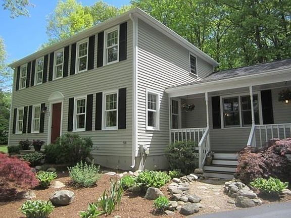 The wait is over! This completely updated and pristine hilltop retreat has it all. Open concept kitchen/family room is the perfect space for entertaining and family gatherings. Light filled back-to-front living room with second fireplace and French doors offers a quiet, more formal entertainment space.This property boasts gleaming refinished hardwood floors, updated granite kitchen with stainless appliances, recent roof and new garage doors. All baths are fully updated with addition of a new sparkling marble master bath! Freshly painted Interior and exterior with neutral, designer friendly colors. The finished basement has den, separate office and tons of storage. Cozy farmers porch has spectacular sunset views-- the enormous deck, original fieldstone walls, professional landscaping and wooded private lot complete the package! Located within minutes to both the Mass Turnpike and Route 495, this home is move in ready- unpack and enjoy!