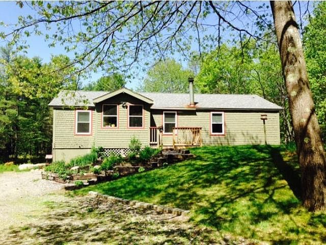 Priced below assessment.Ranch Style Home on over 8 acres. Sits back off the road. Entrance has a 9x7 foyer, all tongue and groove. Open concept with views overlooking the pond. Master bedroom with 13x12 walk-in closet, also plumbed for laundry.In addition to a 18x 12 screened porch we have a 10x8 deck.Lower level ready to finish. Easy commute to Concord & Laconia. Large gardens and fire pit add to your outside enjoyment. Two bedroom septic design.