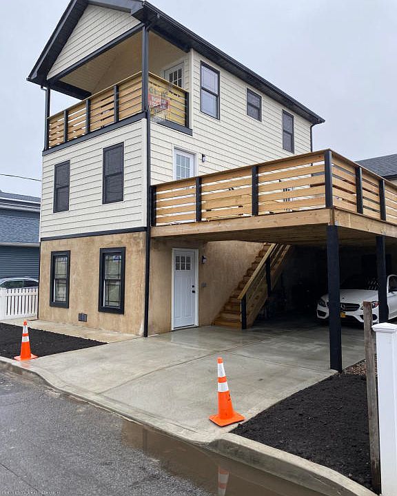 Welcome to New Home! For viewing contact agent at 718.36O.7O31. The New Custom built 1 family house with beautiful views is located in the heart of New Dorp Beach in few steps away from one of Staten Island's most coveted beach areas. Walking distance to the newly constructed shopping mall along Hylan Blvd with restaurants, express buses and supermarkets only moments away! Four bedroom single family house features include custom bathrooms, bamboo hardwood floors, cathedral ceilings, private porch, huge open deck and more! Truly Unique! The house comes with a covered carport, over 1,100 square feet of enclosed recreational space at ground floor, huge 2nd Story open wood deck and a private covered porch with ocean views. Built to F.E.M.A. flood regulations! Come and Make your appointment today. FIRST FLOOR: 1,1100 sq. Ft. RECREATIONAL SPACE. 500 SQ.FT. COVERED CARPORT SECOND FLOOR:2 BEDROOMS, LIVING AND DINING ROOM, FULL BATH & 500 SQ.FT. DECK THIRD FLOOR: 2 BEDROOMS AND FULL BATH AND OPEN BALCONY WITH OCEAN VIEWS.