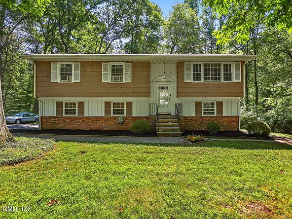Opportunity knocks! Refreshed 3 bedroom, 2 and one half bath raised ranch in private North Stamford setting. The interior has been freshly painted and wood floors polished getting it ready for the next chapter with a new owner. The main level offers a living room/dining area, eat in kitchen, breakfast/tv room, access to the deck, primary suite, 2 additional bedrooms and a full bath The lower level features a spacious family room with fireplace, office/spare room, separate laundry room ,powder room, cedar closet, and a playroom with a ''wet bar''