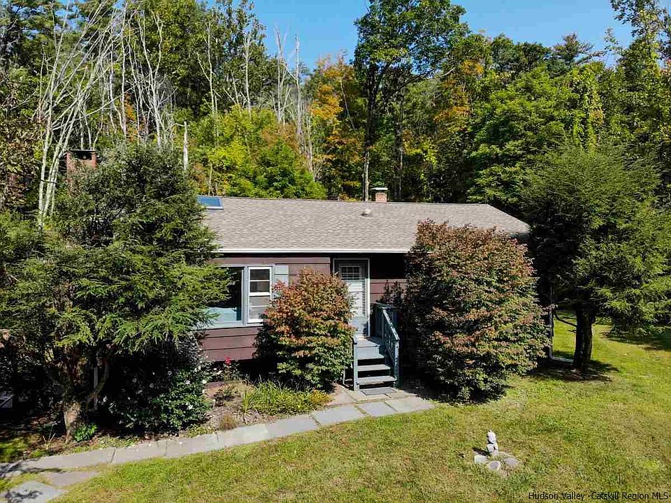 PERFECT MT. TREMPER LOCATION Quiet and Zen like property with 200 feet of stream frontage but not in the flood zone. Zen Monastery sits way up high behind this wooded and landscaped 1.50 acre very private property. Contemporary raised ranch built in 1966 with open kitchen/dining/LR with wood burring FP and hard wood floors. 2BR and 1BA on main level. Small loft space for child's hide-a-way and extra sleeping area, with semi-finished basement and full laundry and half bath. Drive under garage for easy winter access. Above ground swimming pool. Ready to move right in and tweak into your dream home.
