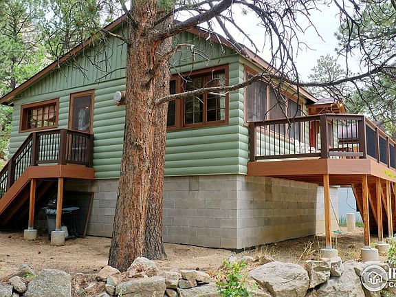 This Charming cabin sits on the Big Thompson river down the canyon off of highway 34. Catch fish from the river and throw them in the frying pan. Relaxing and refreshing listening to the river off of your deck. Many New Upgrades.Owner purchased the property after the 2013 flood and put the cabin on a raised foundation with a full basement. He added two 1200 gal cistern tanks that are plumed into the out side of the wall to make it easy for water delivery. There is a new sump pump system, new electrical and plumbing, new furnace and brand new Trex Decking on both entrances to the cabin. This would be a great location for a vacation home or a place to make all your own for a full time living experience!