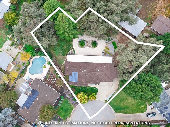 Tucked at the end of a quiet cul-de-sac, this beautifully maintained 3-bedroom, 2.5-bath home (plus office/flex room) offers incredible privacy on a spacious .49-acre lot surrounded by mature shade trees and beautiful landscaping. Inside, the bright and spacious living room features tray ceilings, a beautifully tiled fireplace ready for a wood stove, and large sliding glass doors that overlook the incredible backyard. The large dining area flows right into the kitchen, which offers all the space you’ve been hoping for—granite countertops, an island, lots of counter space with a generous peninsula countertop, white oak cabinets, recessed lighting, sky tubes, a wall oven, Jenn-Air cooktop, Bosch quiet dishwasher, and a charming breakfast nook with a window seat perfect for morning coffee. It has it all! All the bedrooms have brand-new carpet, and both full bathrooms are beautifully updated with double vanities, tiled finishes, and great storage. The primary suite is extra spacious, featuring two closets (including a walk-in), a gorgeous updated en-suite bathroom, and private slider access to the backyard. On the opposite side of the home, the bonus room is a fantastic flex space—ideal as a home office, hobby room, or even a potential 4th bedroom—and includes its own half bath plus exterior access. The backyard is truly a highlight. The 80' x 12' covered porch with stamped concrete, skylights, and outdoor ceiling fans creates the perfect year-round outdoor living space. The expansive yard offers mature oak and redwood trees, a swing set, fire pit, fruit trees (lemon, orange, apricot, grapefruit), a shed, RV hookup and lush landscaping. A newly added partial fence enhances privacy while you enjoy this incredible outdoor space. Additional upgrades include owned solar, upgraded windows, newer exterior paint, a 1-year-old AC condenser, whole house fan, instant hot water, easy attic access for storage, and a fully fenced property with two gates. With its spacious layout, thoughtful updates, and a beautiful outdoor space, this Misty Way home is truly special.