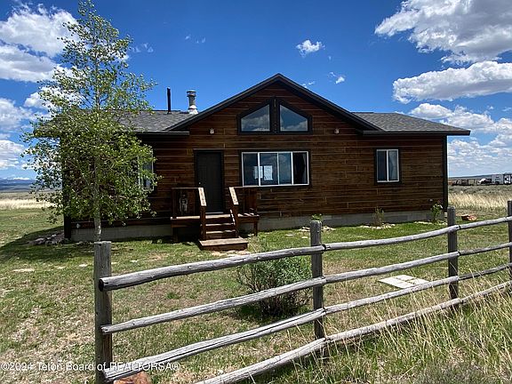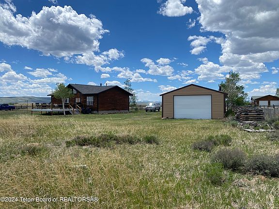 Mountain living your goal? This could be your dream home. You will have both Wind River and Wyoming Range unobstructed views. This perfect mountain cabin has had great care and attention. Open floor plan. Great room has vaulted ceilings and a wood stove. Good size bedroom on suite with walk in closet and bathtub/bathroom on one side of the home. On the other side is the main bath that opens to the second bedroom. The washer/dryer storage room that has plenty of cabinet space and room for a freezer. 20X20 deck off the patio door. You can't imagine the feeling of daydreaming at the Wyoming Range views. 5 acres, horses allowed. 2 garages and the adjacent property to the W. is public lands so you'll never lose your perfect mountain canvas. Ask about the great county options to VRBO or build.