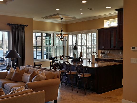 This home is complete with all the upgrades and finishes, truly better than new as owner selling furnished with less than 100 days of use. Outstanding and spacious, this floor plan has the amazing unobstructed view of Hampton Lake and the abundant wildlife. 2 bedrooms, 2 1/2 baths with a custom office off the great room and the master suite is a retreat! The large open kitchen and dining makes this perfect for entertaining. Hardwood and Travertine flooring for easy care and elegance. The all glass walls in the great room open up completely to a screened Travertine patio. This is a must see.