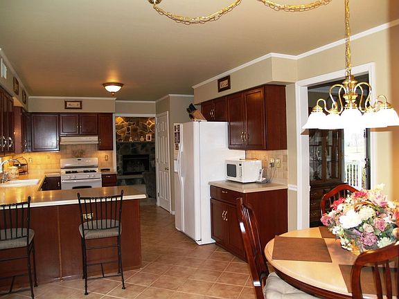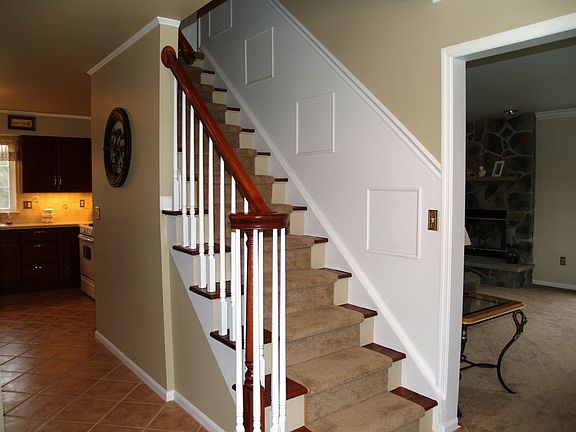 Perfectly updated with the feel of a much larger house! 4 bedrooms, 2 ½ baths, 3 car garage including a detached garage with a 2nd level office/workshop, finished basement, professional landscaping w/ lighting and paver walkways in front and back. This house is immaculate and is completely updated! The entrance foyer welcomes you with tile floors, a curved baluster and wood stairs with decorative picture frame molding. The gourmet kitchen is spacious and features cherry cabinetry, tile backsplash and tile floors, newer appliances and crown molding. The kitchen dining area also has a chair rail and opens through sliding glass doors to a large deck and a private back yard. The over sized family room runs from front to back and has a stone wood burning fire place and new, upgraded carpeting. The dining room has hardwood, crown molding, chair rail with picture frame molding. Located off of the kitchen are a laundry room with tile floors and cabinetry and an updated powder room with a furniture grade vanity. The second level features a lovely master suite with a ceiling fan/light, new, upgraded carpeting, a walk-in closet and an updated master bath with an oversized shower with a seat. The other bedrooms all have new, upgraded carpeting and fresh paint and crown molding. 2 of them have ceiling fans with lights. The second bath is updated with corian counters, new vanity and tile floors. The house has a den in the finished basement with recessed lighting, updated carpeting, fresh paint, moldings and a built in bookcase. There is a detached third garage with a second level workshop/office with cable, upgraded electric, heat/AC. The property is beautifully landscaped and has new shutters and maintenance free balusters on the front porch. Blue Ribbon awarded schools.