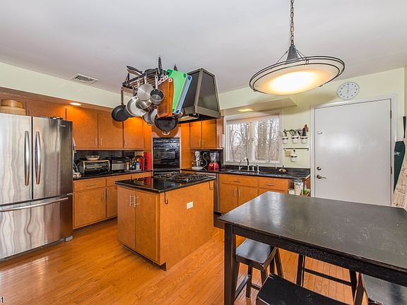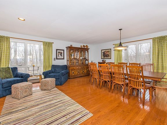 Great Location- large ranch on 5 acres that features master suite on first flr, open flr plan, views, large kitchen w/granite & double ovens, floor to ceiling stone fp, inground pool, a/c, stream 3car garage, partially finished walk-out basement, wood floors, sliders to rear yard, central vac, and security system. The grounds are stately incorporating a circular drive in the front with a rear yard that has views of wildlife and landscape.