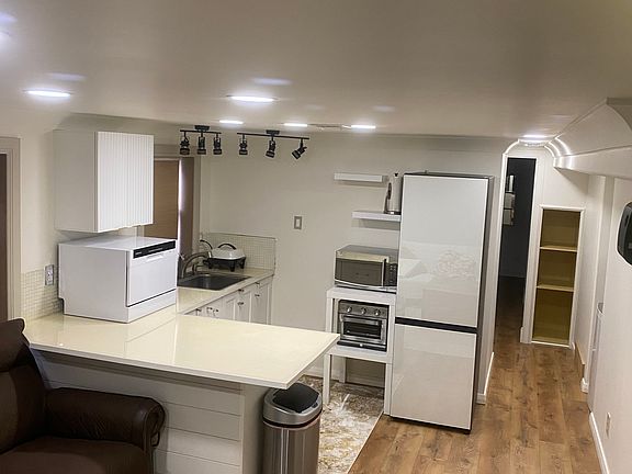 Fully furnished and remodeled stylish space located a mile from Canyon Trails, Station Park, Lagoon, and I-15 access. All high end furnishings and appliances designed for a luxurious tiny home experience. Heated steam shower bathroom with motion activated illuminating vanity countertop. Supplemental heating in each room, Multi-burner grill and fire pit outside, dual wall-away recliners, Washer and dryer, Glass Samsung fridge/freezer, 11 in 1 air fryer convection oven, electric skillet, induction cooktop, countertop dishwasher, water filtration system, garbage disposal, AC powered trashcan, Cordless Dyson vacuum, 12" gel memory foam mattress and excellent air filtration. 4k Apple TV units for 80 and 50 inch 4k TVs. Access to Apple movie library, Apple TV+, ESPN+, Prime Video, Hulu, Netflix, Paramount Plus, and HBO max. Wi-Fi lighting and appliance control. High-speed wireless internet. Large locked storage space adjacent to the unit on far end. Access to billiards/ping pong room with tournament quality pool table through back door in storage area. Dishes, glassware, and silverware provided. Queen bed sheets, towels and closet hangers not included. Furnishings can be rearranged or swapped upon request. Month to month lease or negotiable longer term. Single occupancy. Security deposit is fully refundable. Everything included in base rent except pet fees. 1 pet maximum. Parking anywhere outside unit. No smoking inside.