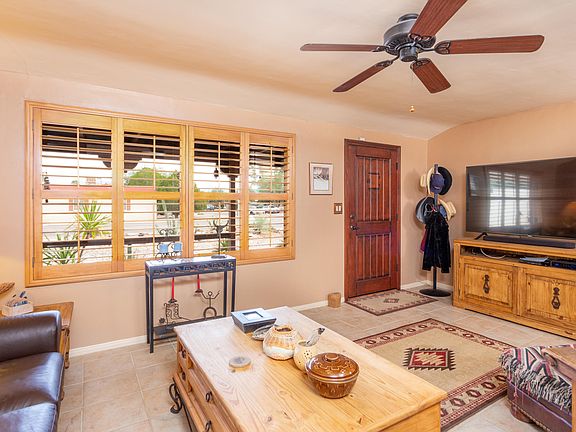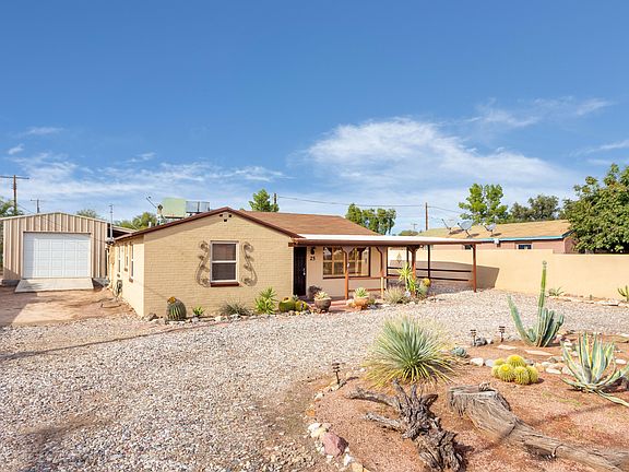 Move in ready 1,339 sqft brick Mid Century Ranch Home built in 1947. Three bedroom/two bathroom + detached workshop or garage w/ storage (660 Sqft) in desirable Poets Corner in thriving Central Tucson. E/W orientation on.24 acre lot with no HOA. Comfortable at home living. Single story, no stairs/steps, no carpet, energy efficient double pane windows w/ screens, custom Plantation Shutters. Coved Ceiling adds to the mid century feel. Dual cooled with AC & Swamp cooler, and fans. Dining Room off kitchen. Security doors on multiple entry points. Good sized bedrooms. Amazing yard with long covered Patio and Stamped Concrete making the private backyard a great place to relax. Fantastic central location close to Randolph golf courses & tennis court