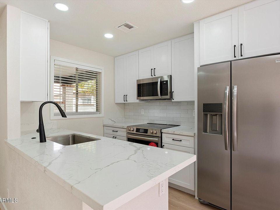 Step into your new fully-remodeled home with dual masters in one of the best neighborhoods in Chandler. You will love the open concept kitchen, featuring gorgeous quartz countertops, 42inch pristine white cabinets, and sleek Frigidaire Gallery stainless steel appliances.