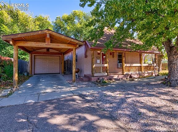 Rare private oasis in Downtown Colorado Springs. Beautiful exterior and interior. Interior has been updated. Large family room with fireplace, master bedroom has 2 closets, one of which is a large walk-in. Main floor living includes second bedroom, bathroom, updated kitchen that backs to large private patio, and huge laundry room completes the main floor. Basement is perfect for entertaining with beautiful wet-bar, large living area, bonus room and bathroom. Storage closets throughout home make it ideal! Exterior has one car garage with covered beautiful custom wooden carport. Private lots with mature trees and multiple garden boxes. This home is located across from Shook Run Park at end of El Paso Road which means no street traffic. Easy access to downtown, and I-25. Property is being sold as is.