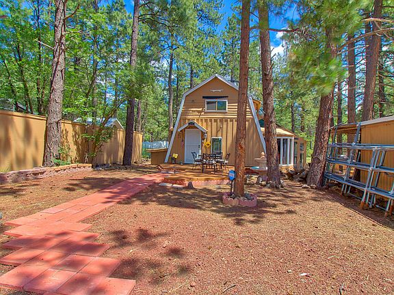 Bask in all the beauty that Northern Arizona has to offer in this forested getaway! This quaint 2 bed 1.5 bath A-frame cabin features a cozy kitchen with upgraded features, a wood-burning stove, a large back deck, an open deck in front, an outdoor barbeque with bench seating. The secluded location gives you a peaceful and private escape from the stress of daily life while the security system provides peace of mind when you're away. The utility shed--which can be used as a small garage--offers enough storage for all your outdoorsy gear and has an attached dog run for your furry friends. Come see for yourself and fall in love with this adorable home away from home!