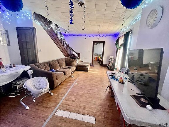This large 5 bedroom 1.5 bath corner end of a row home has a brand new gas heater & hot water heater. The first floor offers a spacious living room, din room, galley kitchen with half bath, the second floor consists of 3 bedrooms & a full bath. The third floor offers two additional bedrooms. There is a large basement for storage & laundry hook up. Outside you will find a covered front porch, rear covered deck and a Fenced in yard. Property is currently tenant occupied with a month to month lease.