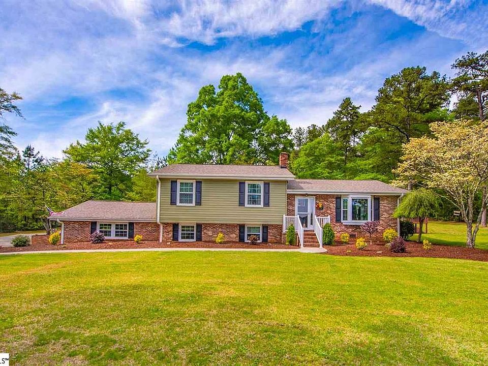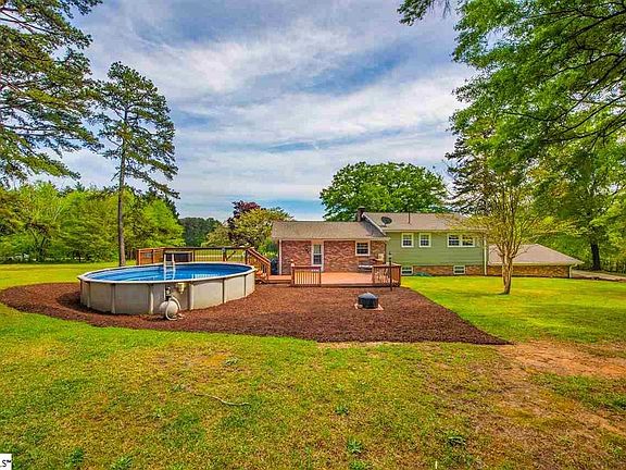 Fantastic REMODELED home on 5 ACRES with a BARN and shed! This place is a gem with tons of road frontage, a magnificent oak out front, and VIEWS of an equestrian home across the street. Mountain views are not far away either. NEW CONCRETE DRIVEWAY with loads of parking space, new WINDOWS, SIDING, HVAC and ROOF ??? looking very sharp with awesome landscaping! Inside the farm house feel will blow your away with an OPEN FLOOR PLAN that is almost all HARDWOODS (no carpet). Check out the ALL-NEW KITCHEN with sealed wooden butcher block counters and large ISLAND. Appliances are all stainless steel. Cooks will love the extra counter space and extra PANTRY space down to augment the one in the kitchen. 3 large bedrooms are found upstairs with hardwood floors and FULLY REMODELED BATHROOMS featuring ceramic tile flooring. Closets are spacious and feature ORGANIZERS. But you will really love the downstairs BONUS/REC ROOM that is truly huge, with ceramic tile flooring and trendy barn siding on the wall ??? great atmosphere with a wood burning FIREPLACE. You have plenty of room for a POOL TABLE and a sofa down here. Off the rec room is a large walk-in LAUNDRY, a FULL BATH, and an OFFICE ??? lots of extra storage here. The rec room leads to an EXTRA-LARGE GARAGE with fresh paint and a WORK BENCH. Out back you will find a 2- tier DECK ??? great for hanging out on shady afternoons and enjoying the privacy of the surrounding forest. An above ground POOL is only 3 years old and has a nice deck for access. Need tractor storage or thinking about horses? The old BARN is really huge and is very functional and dry ??? could me modified for several stalls and have plenty of hay storage. Another smaller SHED works well for additional storage or chicken COOP. Architectural roof 2009. New HVAC in 2017. Deck 2015. General remodel was 2015. Septic pumped 2015. This is a great area of northern Greenville County with great mountain views of the Blue Ridge. There are several nice e