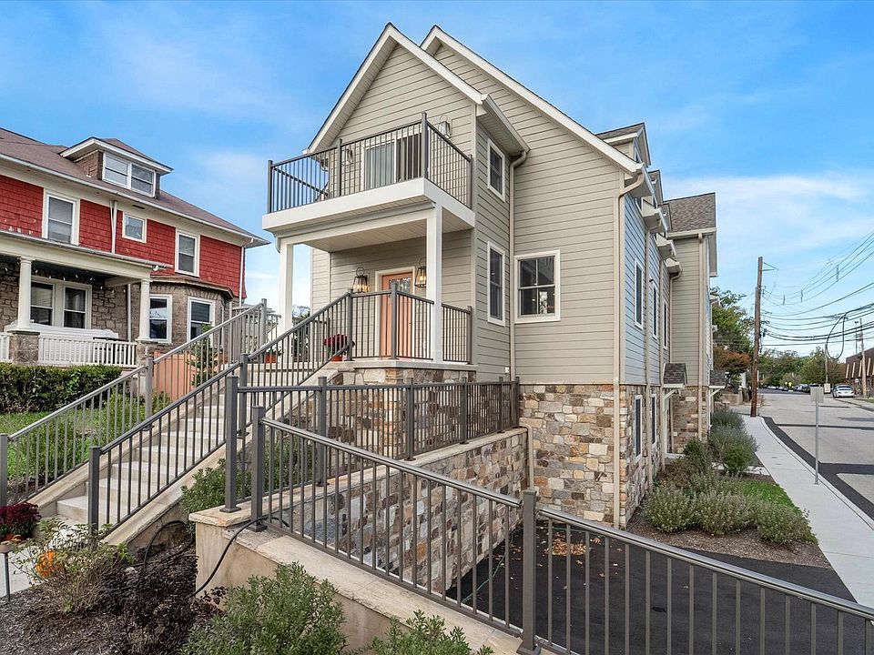 Just one block off Ambler’s iconic Butler Avenue, The Colony Club features two luxury new-construction homes. Originally built in 1912, this Ambler landmark has been completely transformed, preserving its timeless character while delivering the quality and sophistication of brand-new construction. Once home to a vibrant social club and later a library and community gathering place, the building has been thoughtfully reimagined to honor its architectural roots while offering every modern amenity. The builder’s craftsmanship is evident from the start, beginning with the lifting of the original structure to install new foundations and a lower-level living space. All components were newly installed in 2024 and 2025. Unit A welcomes you with timeless curb appeal. The classic front staircase leads to a covered porch, the perfect perch to enjoy the charm of Ambler’s tree-lined streets. Step inside to a gracious foyer that opens to the Great Room, where gleaming solid oak engineered hardwood floors set the tone for the quality and detail throughout. The main level offers a bright, open layout with large windows, a gas fireplace, built-in bar, recessed lighting, and a designer kitchen with shaker cabinetry, granite counters, stainless-steel appliances, and a farmhouse-style island. A stylish half bath with a pocket door completes this level. Upstairs, the primary suite feels like a true retreat, featuring hardwood floors, an 11-foot tray ceiling, multiple walk-in closets, a spacious sitting area, and a spa-inspired en suite bath with dual vanities and a walk-in shower. Step onto the private west-facing balcony—the perfect place to unwind and take in sunset views over Ambler’s skyline. The lower level provides two additional bedrooms, a den, a full bath, and a laundry room with walk-out access to two private off-street parking spaces. Green features include insulated concrete form (ICF) foundations, VRF HVAC systems with room-by-room climate control, LED lighting, closed-cell spray foam insulation, and the upcycling of original materials. Steel-beam reinforcement, and all-new systems make this home a rare blend of historic beauty and modern comfort, just steps from downtown Ambler, SEPTA, and award-winning Wissahickon schools. The Colony Club offers a rare opportunity to own a piece of Ambler’s history, fully renewed for today’s lifestyle—a truly one-of-a-kind home where character, craftsmanship, and comfort come together beautifully.