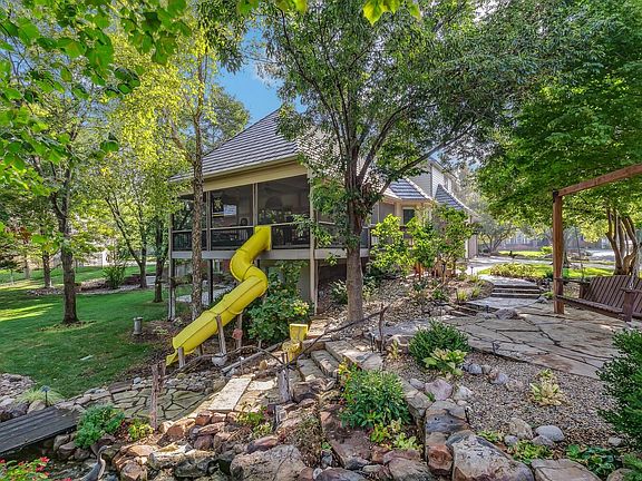 This brick, 1.5 story estate in Shadybrook Farms sits at the end of a cul-de-sac on a half-acre lot that has been extensively and professionally landscaped, hardscaped, and lighted for a low-maintenance and park-like yard. The picturesque waterfall feature is beautiful and minimizes neighborhood noise. The plants and mature trees flourish with the drip, soaker, and sprinkler systems on an irrigation well. Enjoy the view from the large screened-in deck, the limestone paver patio with custom frame for a double swing, or the full patio with walk-in basement access. (how do you like that emergency exit from the screened in deck?!) There are 3 workbenches in this home, one in the side-load 3-car garage and two in the basement! The DaVinci roof will provide a substantial discount on insurance as it is class 4 impact resistant, class A fire rated, wind certified to 110mph, and has a lifetime limited material warranty. The stamped concrete/stone/brick sidewalk leads to the front door with custom leaded glass sidelights. The welcoming foyer features hardwood floors, 2-story entry, and a coat closet with automatic lighting. The sunny living room has those 2-story fabulous high ceilings, built-in cabinets/dry bar with granite counters, and floor-to-ceiling custom trim on the fireplace. The formal dining is on one side of the foyer and the office is on the other. The double glass french doors lead to the office which has built-in double desks with quartz tops, built-in bookshelves, and over-desk cabinets. The primary ensuite is a true retreat! A two-way fireplace keeps things cozy in the bedroom and recently renovated bathroom. Heated floors, under-lit cabinets, rollout drawers, double vanity, quartz countertops, walk-in tub, glass shower with custom floating tile floor, and a private water closet. The primary closet is full of custom organizers and storage with quartz counters, and leads right into the laundry room featuring machine pedestals, sink vanity, and plenty of hanging space. Back across the house, the kitchen is definitely the heart of this home. It has island seating for 6, granite counters, plenty of gorgeous wood cabinets, roll-out drawers, hardwood floors, double ovens, buffet AND secretary, as well as the dreamy Butler's pantry that we must further discuss. The original laundry was in the butler's pantry, and hookups are still available. However, modifying it with floor-to-ceiling tile, under-lit cabinets, floating shelves, and even more roll out cabinets certainly added value. The powder bath has also been fully renovated with an under-lit floating vanity, decorator window treatment, and quartz counters. The informal dining (or breakfast nook) has a turret ceiling and new slider to the screened-in deck. The family room (or hearth room) has surround speakers, gas fireplace, and new windows with internal blinds. Upstairs you will find 3 more bedrooms. One has vaulted ceilings, architectural shelf, and a private full bath. The other two share a jack-n-jill bathroom. All three have room darkening levolor blinds and private vanities. The walk-out (at grade!) basement has plenty of room for parties, sleepovers, and gatherings with friends and family! The L-shaped rec room has a wet bar, huge entertaining area, as well as room for a pool or ping pong table. There are three unfinished rooms for storage, two of which have workbenches in them. The fifth bedroom has a walk-in closet and shares a Hollywood bath with the main living area. If this gorgeous home isn't enough on it's own, it is also in that sweet spot everyone loves: Andover schools but Sedgwick County taxes! Come check it out today!