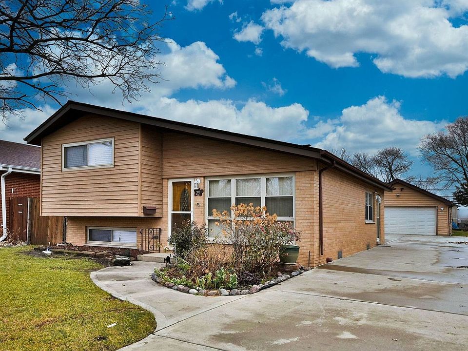 Walk into your new home. This sharp split level offers beautiful open concept and many recent improvements. Newer siding, windows, driveway, roof and H2O heater. Refinished hardwood floors and new paint through out. New kitchen floor, new doors and new remodeled bathroom. Living room with cathedral ceilings, kitchen with granite counter tops and plenty of space for table. This beautiful split level has over 1800 SQF and plenty of natural light. Plenty of room for all the cars in the huge driveway and patio. The 2.5 car garage has extra storage in the back. Move in ready.
