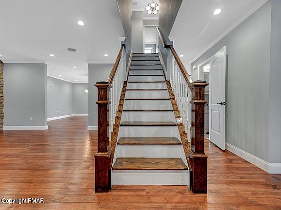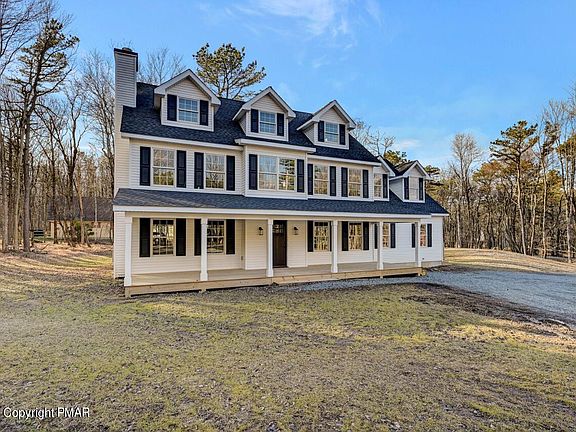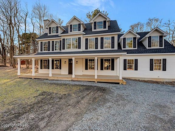 Brand new construction in amenity filled community of Towamensing Trails. This modern colonial-style home with 3366 sq ft of living space. Looking for a large investment property that is in an STR friendly community and township? This professionally designed luxury home offers it all! Featuring 4/5 bedrooms with 2.5 baths. As you enter, you are greeted with gorgeous hardwood floors flowing throughout with crown moldings too. Entertain in your gourmet kitchen with high-end granite countertops, large island, top of the line stainless steel appliances and open floor plan which flows to the large dining area. Formal living room with a impressive stone wall fireplace. Media/game room has all the wiring and cable ready set for you. Very spacious primary ensuite with walk in closet, vaulted ceiling and private balcony. The primary bathroom is luxurious with steam shower with wall to ceiling tile and an double vanity. This complete your private oasis! Laundry closet for convenience on the 2nd floor. The additional 3 bedrooms are a generous size. This home features a 3rd floor for endless possibilities for a game room or whatever your heart desires. Did I mention this SMART HOME offers convenience, comfort and cost savings through remote access. This is a must see home !