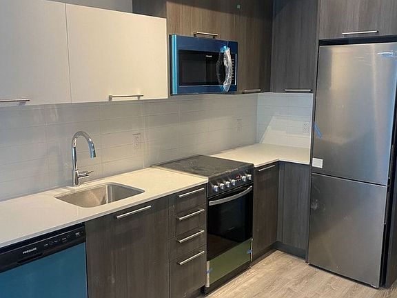 Welcome To The Desirable "Queensview - Backyard Condos". This Well Appointed, "Meditate" Model Is AModern 1+1 Bedroom Unit Boasting Laminate Floors, Stainless Appliances, Ceaserstone Countertops,Valance Lighting, Backsplash And An Open Concept Layout With An Abundance Of Natural Light-A truemust see! 589 sqft + 61 sqft balcony, includes parking and locker.