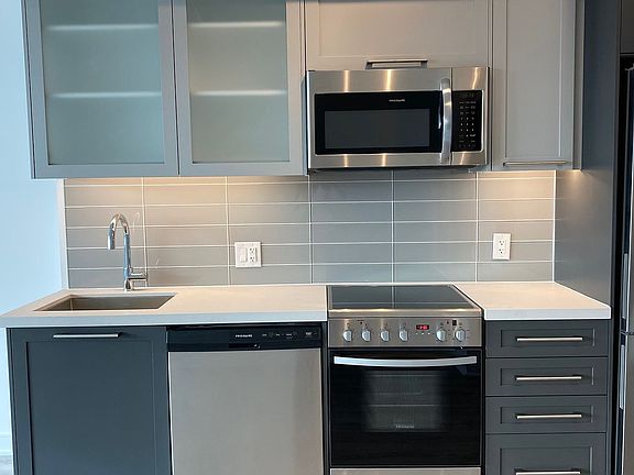 Welcome To The Desirable "Queensview - Backyard Condos". This Well Appointed, "Rise" Model Is A Modern 1+1 Bedroom Unit Boasting large terrace, Laminate Floors, Stainless Appliances, Upgraded Ceaserstone Countertops, Valance Lighting, Upgraded Backsplash, upgraded cabinets, upgraded stacked washer/dryer And An Open Concept Layout With An Abundance Of Natural Light. A must see!