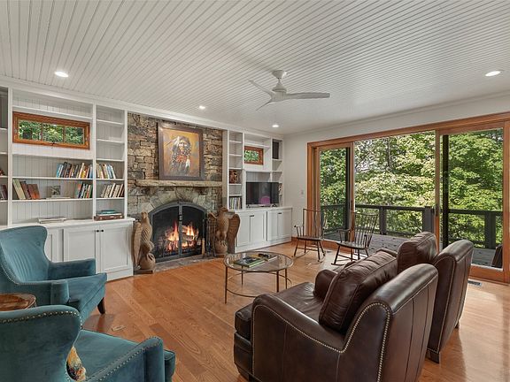 Located in the heart of Cashiers, this 6-bedroom, 6.5-bath home sits on 2.13 acres of private, well-maintained grounds with views of Chimneytop and Rock Mountain. The gently sloping property offers ample lawn space and room to add another home or guest house, making it an excellent option for a family compound. The main residence features a large primary en-suite with its own fireplace and mountain views, plus four additional guest suites. The main level features a large kitchen including a walk-in pantry, a dining area and a living room centered on a stone fireplace. Outdoor living is highlighted by a large screened porch for dining and conversation, along with open decking for gatherings. The lower level provides a large family room, wet bar, and second laundry for ease of entertaining and hosting. A private guest apartment is located above the two-car garage. This property offers the perfect combination of space, views, and convenience, just minutes from Cashiers dining, shopping, and in-town amenities.