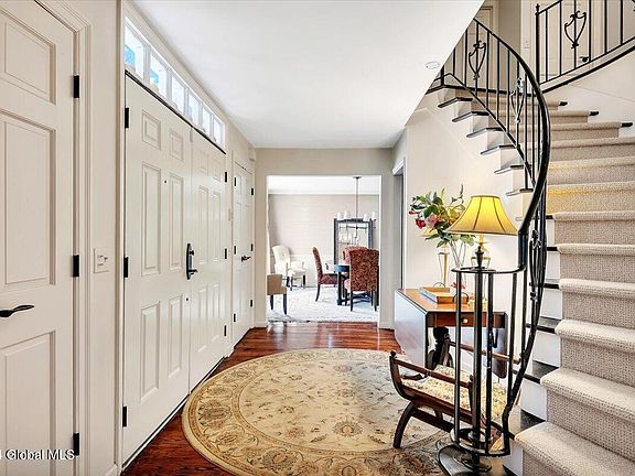 Quick closing available! Stunning 5-bedroom, 3.5 baths colonial. Roost Country Estates, private, tranquil, low maintenance, meticulously landscaped yard, saltwater heated pool, slate patio, bocce court, putting green, composite beck. Inside, the thoughtfully designed home features a spacious family, formal diningroom, large livingroom, gameroom, breakfast room, French doors, hardwood floors. Spacious Chef's kitchen, first-floor laundry, plenty of closets & storage. The home also boasts 1st and 2nd floor bedrooms, open and spacious finished basement with luxurious epoxy flooring, bath, bar, gym and entertainment area, large windows & entrance to the serene & secluded back yard. Public utilities, efficient hot water zoned heat & C/air