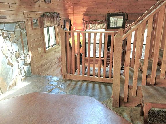 THE SWEET AROMA OF FRESH SAWN CEDAR GREETS YOU AT THE DOOR! 1050 sf+: unique, charming, spotless & in excellent condition. Comes furnished -Comfy sofa conversion for 2 more- add a futon and sleep 6! Where in the world can you find a cozy cabin with its own spa room inside fully finished in Tennessee Field Stone - very romantic & relaxing. Metal Roof... Big porch for listening to the stillness of the forest, generous private lot & just minutes to Hwy 515 between Ellijay & Blue Ridge. Finally a cabin where you can heat the whole place with a Buck Stove fireplace or choose existing heat.... like going back in time. Has established fire pit. So many possibilities with this little beauty fully decorated in mountain Black Bear theme. Cutest weekender cabin on the market at a seriously affordable price.