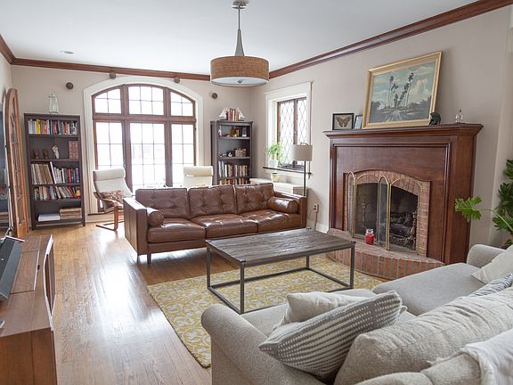 Legendary, completely updated showstopper situated on a dead-end brick street. Arched doorways, leaded glass windows, custom millwork, refinished hardwood floors, abundance of natural light. Your new oversize living room features a centerpiece picture window, opens to a screened porch overlooking backyard and pool. The porch connects to the kitchen complete with walk in pantry, granite and stainless appliances. The home has updated designer lighting throughout and also gorgeous updated baths and all closets with California closet systems or cedar. Attic access tucks away hidden space ready for finishing. From the curb the home is boasting NEW slate roof, new copper gutters, fresh tuck pointing, new retaining wall, new composite decking, fencing all leading to the backyard oasis. A large in-ground pool, separate water feature and professionally curated landscaping. Additional updates include a new sewer/water line, boiler 2007, updated electric, concrete driveway, sidewalk and more.