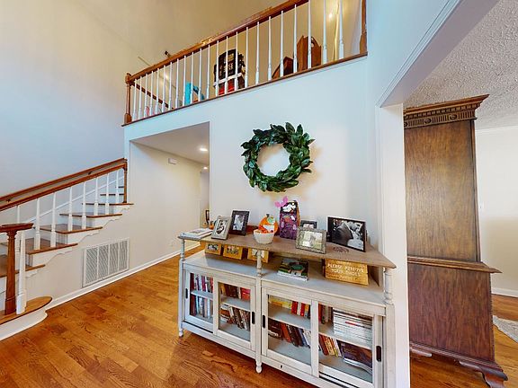 This home is move in ready. Hardwood has been refinished. All the walls have been repainted. It feels like a new home when you walk inside. The kitchen has had a major upgrade to include new quartz countertops, new gas range, large island with seating area, and all stainless appliances. The large formal dining room is on the front of the house and the traffic flow to the great room makes it great for entertaining with peaceful water views from many rooms. There is a primary bedroom en suite on the main floor. The tile to refinish the bathroom and shower will be left in the garage for a future project. Three bedrooms upstairs are split. One of them having an en suite bath and walk in closet and is essentially a second primary suite. The other two bedrooms share a bathroom. Theres a landing area that can be used as a flex space.