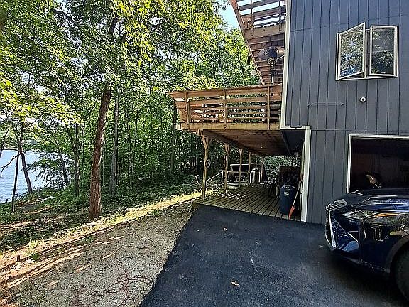 2 car garage enters into finished tv room with pellet stove with bonus bedroom and full bath. Main floor open concept with cathedral ceilings living room with vermont casting wood stove and kitchen. Full bath with laundry room and 2 bedrooms. Large deck that wraps around one side. Third floor master with balcony and full bath. Large walk in attic. 12 x 20 shed Hard wired 11KW generator. Approx 160' water frontage on Crystal lake Outdoor shower with hot water to relax after long day. Also negotiable, 18' Searay, Renegade Skidoo snowmobile excellent condition, and some home furnishings. House has Rinnai heater propane- with electric heat back up Town Water /Septic Brokers are welcome!