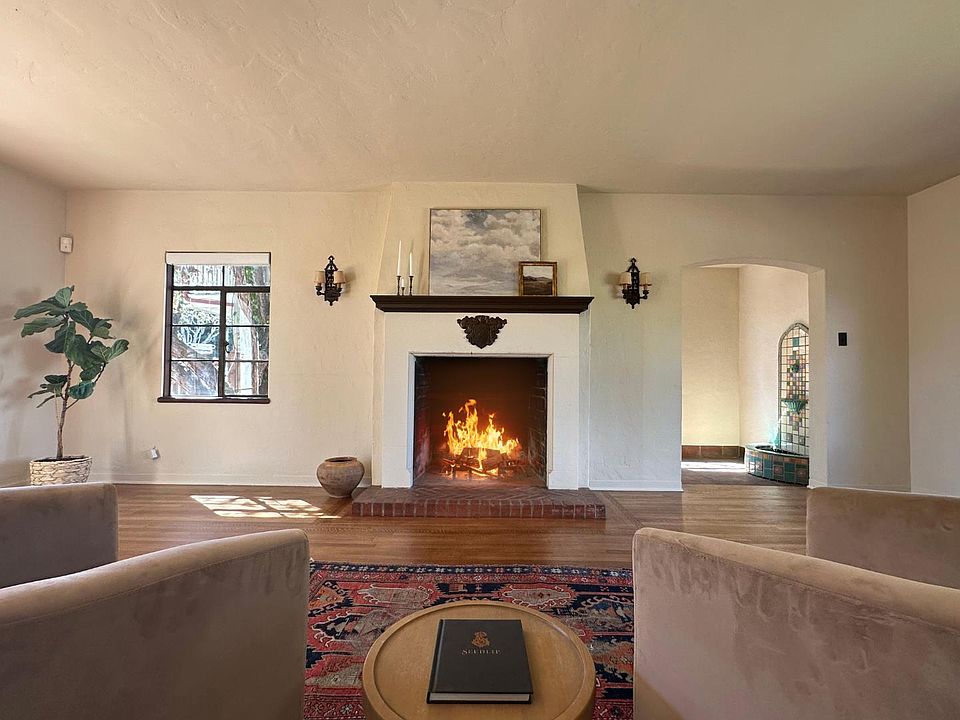 Experience the character of Spanish Mediterranean living in this exquisite 3-bedroom, 2-bathroom haven. The newer roof sets the tone for quality, while the updated kitchen exudes Spanish flair with granite countertops, stainless steel appliances, and a charming bar. Sunlight dances through the spacious living room, accentuating the gracious fireplace. A serene sitting room features a fountain, creating an oasis of relaxation. Entertain in style in the dining room, and savor casual moments in the breakfast room. The basement offers versatility and extra space. Unwind in the large primary adorned with cedar-lined closets. A separate dressing room boasts a built-in ironing station for added convenience. The mud room with a full bathroom and washer/dryer ensures practicality meets comfort. Outside, an oversized lot with numerous fruit trees provides endless possibilities. Indulge in Mediterranean elegance, unrevealed character and modern comforts in this captivating abode.