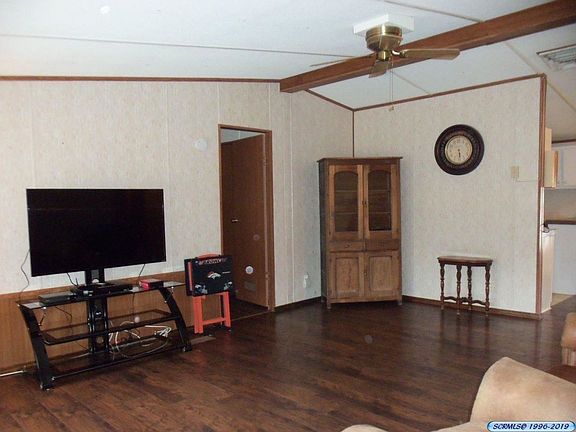 A great little place to call home with updates and it's affordable ! This 3/2 manufactured home has a split floor plan with newer laminate floors installed in all but one bedroom (laminate material will be left for new owner). Walk in closets in all bedrooms! The master bathroom has a new tiled shower stall, and the guest bath has a new tub with tile surround. Outside there is a covered front porch and circular driveway, and in the back is a covered back porch and very large chain linked fence yard with two wood frame storage sheds. Outside the fenced yard is another large storage shed and RV hookups! Lots here for the money - come take a look!