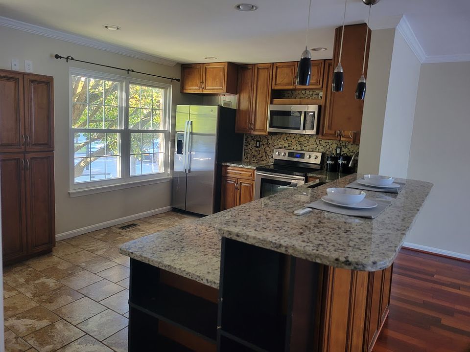 Well maintained end of group townhouse with plenty of storage and extras! Solar panels to make utilities more affordable. Bright eat-in kitchen w/lots of cabinets & counter space. Rear deck looks onto the common area fields and is perfect for sunning or relaxing in the shade with the retractable awning that is installed. Finished basement with walk up steps to the patio. Additional shed and storage units on the deck and patio included for accommodating townhouse living. Conveniently located within minutes to shopping, restaurants, 95 and more! Renter is responsible for all utilities and renters insurance. No smoking. Pets are case by case basis