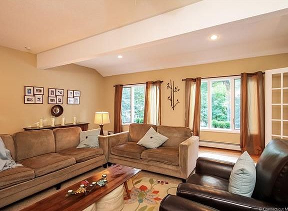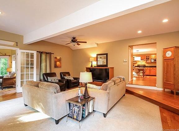 LOVELY one owner home! This 4 bedroom, 2 1/2 bath beauty sits on 1.36 private acres. First floor has large rooms with many updates and open floor plan. An entertainer's dream with fabulous sunken living room open to recently remodeled kitchen, formal dining room with vaulted ceiling, and gorgeous sunroom. Master suite with full bath and walk-in closet has private entrance from deck. Laundry facilities are also found on the main level. Upstairs you will find 3 generously sized bedrooms, remodeled full bath, and office with balcony overlooking the dining room. Partially finished basement offers additional living space. Quality inside and out - this is a MUST SEE stunner! Conveniently located 20 minutes to downtown Hartford and to UCONN Storrs.