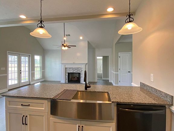- Solid Surface Counters, Walk-In Closet(s), Bedroom on 1st Floor, Cathedral Ceiling(s), Ceiling Fan(s), Kitchen Island, Primary Downstairs, Eat-in Kitchen, Pantry