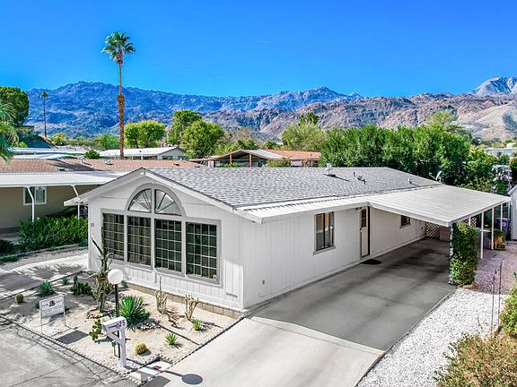 Welcome to the all age community of Silver Spur where you'll enjoy many amenities such as a heated salt water pool, 2 hot tubs, a gym, putting green, bocce ball and a clubhouse for residents to use for birthday parties, meetings etc.Silver Spur is nestled at the bottom of the Santa Rosa Mountains on the Pines to Palms Highway just minutes from hiking trails such as Art Smith Trailhead and the Bump and Grind. Less than 5 minutes to El Paseo famous for high end shopping and restaurants.This 1986 manufactured home is low profile so no steps to climb to enter. Located in one of the best areas of the community with a large 60' x 83' lot with plenty of outdoor living space. Parking can accommodate 4-5 vehicles. A large barn style Shed World storage shed with plenty of room for your belongings. Landscape is watered by an automatic drip system. Inside features include 2 bedrooms, 2 bathrooms, laundry room, large living room and a family room with built in office area. Newer stainless steel appliances and a walk in pantry. Laminate wood look flooring in the living areas and carpet in the bedrooms. New AC and heater May 2022.