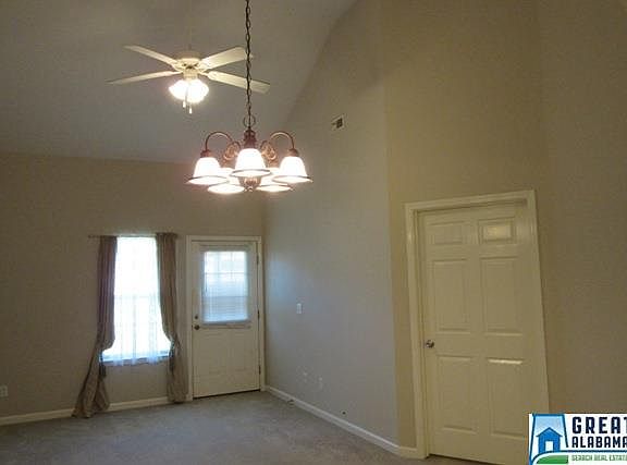 One level 2 bedroom, 2 bath Townhome with garage. Open floor plan, 9 ceilings throughout, with wide doors. Master is roomy with a large bath, garden tub, separate shower and large walk in closet. The second bedroom has a vaulted ceiling. The kitchen has double trey ceilings a breakfast bar and a pantry, all appliances to remain, stove, refrigerator, microwave, dishwasher. It is rare to find one for sale with a garage. Located in the City Limits, close to shopping and drug stores, near the new St. Vincents Hospital and Jeff State College. Very energy efficient. Move in ready. Privacy Fence in back yard, with a covered patio. One car garage with pull down for storage.