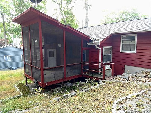 Come to CT for peace and tranquility in a lovely lake community! Back yard is a park-like setting on a level lot. Walking distance to beachand community areas. Open, spacious floor plan with a warm, cabin feeling. Large family area with walls of windows, hardwood floors and a cozy screened in porch. Situated in a gated community with two beaches, tennis courts, club house and walking trails. Lots of opportunity for investors to create a masterpiece. House is sold "As Is".