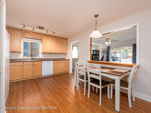 The rocking chair front porch leads you into this 3BR 2BA ranch in a desirable neighborhood in Eatontown. Bright n sunny LR has hrdwd flrs, eat-in kitchen opens to a FR with sliders to a paver patio, fenced in yard and above ground pool. Newly finished basement is additional FR, exercise room & great for a playroom. Master BR has an updated full BA & walk-in closet. 3rd BR is currently being used as an office. Hrdwd & Laminate flrs throughout, workshop&storage area in the basement. Many upgrades over the last few years, both BA, flooring in master BR, FR&kitchen, whole house humidifier, both storm doors, exterior side door, sliding door, paver patio, 200amp electric, attic insulated, pull down stairs, washer, Bosch DW, microwave, Lennox HVAC, hot water heater. This house has it all.