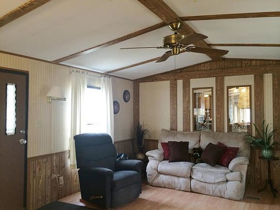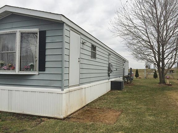 Affordable living - low taxes and farmland views! Backs to playground! Clean & renovated 1986 Hampshire 14x70 with covered patio. All appliances stay (new in 2012). 2 Big dogs OK. Water/sewer billed at $52.08 monthly minimum. Roof (apprx 17 yrs or less).New flooring. New tub surround in 2012. New hot water heater and furnace converted to propane. New back steps built. Immediate occupancy!