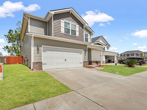 Welcome to this stunning home nestled in a sought-after neighborhood that seamlessly blends functionality with tasteful design. Downstairs, an open floor plan facilitates both entertaining and everyday living, flowing effortlessly from the formal dining room, to the spacious living area and gourmet kitchen with its large island and sleek white cabinets. As you are cooking or prepping meals, you'll feel completely involved with everyone else downstairs. Featuring a half bath off the entry, your guests will have easy access and no reason to go upstairs. A walk-in pantry, additional closet and mudroom off the garage provide ample storage and practicality. Upstairs, you will find all four bedrooms including a spacious master retreat with dual closets and en-suite bathroom. The three additional bedrooms, each boast large walk-in closets for generous storage. A small loft area, off the laundry room, offers versatility as a cozy office or play space. Outdoor living is enhanced with a large screened-in porch, perfect for relaxation or entertaining, along with an additional covered patio area perfect for your grill and outdoor cooking. The fenced backyard provides privacy with no homes behind you, and there's a personal play space designed for kids to enjoy right at your fingertips. This property not only offers modern comforts and stylish finishes but also a prime location close to schools, parks, and the new Publix location in Hinesville. Schedule your showing today to experience everything this exquisite home has to offer.