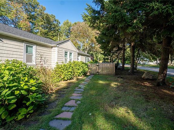 Picture perfect escape! This beautiful one-level home with freshwater access to Pettaquamscutt Lake and a short walk to the water & beach for all of your summer recreational activities! As you enter through the front door, you'll notice the large family room with cathedral ceilings, multiple skylights, gleaming hardwood floors, and a beautiful custom stain-glass window, all letting a ton of natural light flow in. Here you can access the backyard patio through the sliding glass doors. The large adjacent dining room offers enough space for entertaining and socializing in this great open floor plan. Next, we move into the updated kitchen with stainless appliances, built-in wine rack, dark walnut cabinets and even room for an eat-in kitchen. The bathroom which also flows with great natural light features a custom stain-glass window and attractive custom tile work. All of this sits on a corner double lot, with access to the driveway from two streets which allows for parking for up to eight cars for all of the entertaining you'll be doing! The yard around the back & side of the house is newly fenced in so it's perfect for pet owners. You'll also be getting a shed for yard equipment and storage. This home also features a new boiler, water heater, and a newer roof! Here is your rare opportunity to own this dream home! Nothing left to do but move in!