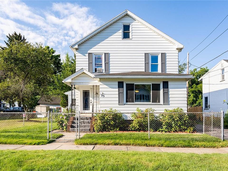 Great space in this 3 bedroom Colonial with hardwood floors both up and down. Fresh paint thruout. Tear Off Roof several years ago. Bright spacious rooms on first floor with a large breakfast area off kitchen with all appliances included. Enclosed porch off kitchen leads t a very private and Fully fenced in yard for your pooch or 3. Huge walk up attic could be an awesome master suite with some creativity. Walk out basement with access directly into backyard. Water to the river and trails in minutes or Ontario Beach too. Newer windows. Covered Patio off back of home too. Delayed showings 8/24 from 3:30 - 7 PM, again on 8/25 from 3:30-7 PM then Saturday/Sunday from 11-5 PM. Delayed negotiations Monday 8/29 at 5 PM. Please allow 24 hours to respond. Sellers ideally would like to close end of September with small rent back for 4-5 days if possible.