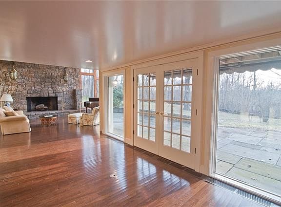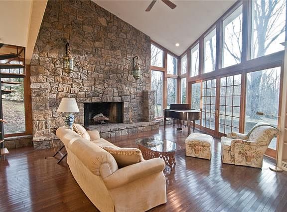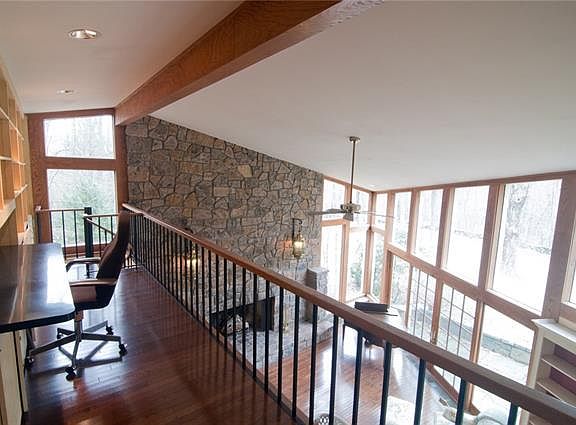 Unique Pound Ridge contemporary-style home on a delightful two acre parcel. The home has been expanded from its original design to include a dramatic two story great room with a massive stone fireplace and wall of windows facing south and west towards open, rolling property. French doors walk out to a stone terrace overlooking the in ground pool. A first floor bedroom suite is convenient to the two car garage and has its own private entrance. Privately set at the end of a cul-de-sac, the location is convenient to Scotts Corner, New Canaan and Stamford, Connecticut. A wonderful country home filled with light and open space.