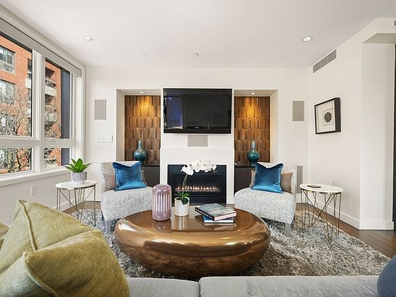 Sun drenched corner two bedroom & two bath home with every amenity! Single level living new construction (2015) with garage parking & direct elevator access. The open floor plan living room is ideal for entertaining with retractable corner glass walls creating an indoor/outdoor experience with a gas fire place & surround sound home theater. Gourmet kitchen with Sub-Zero & Wolf appliances, stone counters & great storage. Gracious dining area with custom bar with chilling drawer and storage. The primary suite has a spa style bath with heated floors & custom closets by Closet Solutions. The second bedroom is ideal for guests and or a home office with a serene second bath with soaking tub. Entertain outdoors on the generous private roof deck with spectacular city views, full staircase access, water and hard gas line for grilling. Smart home systems for lighting, audio and climate control. Full audio, custom lighting & power shades throughout. Bonus storage closet. City living at its best!
