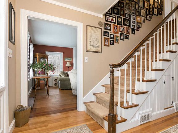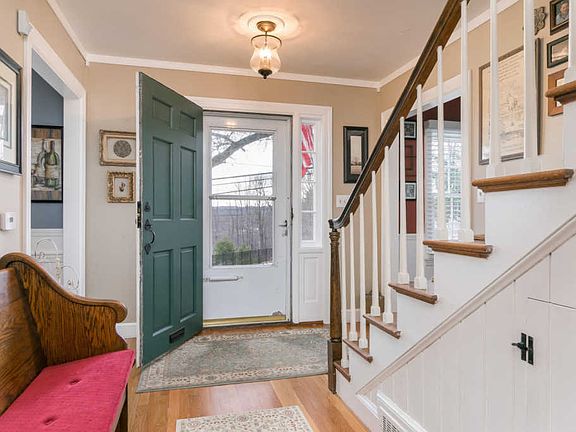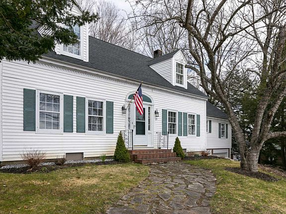 This remodeled Cape Cod Style home has retained the period's quaint details with intricate detailed molding and trim, gleaming hardwood floors, cherished built-in china closet, and the original closet ironing board in the kitchen. These details add to how the builder had pride in workmanship and a creative way to use every nook and cranny of space in a novel way. The home has a formal dining room with hardwood floors, a ceiling chandelier with medallion accent. As you pass through the dining room you are greeted by an elegant front foyer and stately bannister to the second floor. To the left of the home is the comfortable front -to -back living room with a working wood burning fireplace and incredible and expansive mountain/valley view. There is a first floor bedroom, den, and bath adding to the easy of accommodating guests. The second floor has two bedrooms and a full bath with hardwood floors and updates. There's excellent storage in the space above the garage or turn it into additional living space. You will be pleasantly surprised by the private patio in the backyard. Nature surrounds you in your private oasis. This home is tastefully decorated throughout and a pleasure to show- a must see.